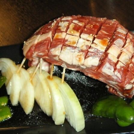 小腸をそのまま、長さ約70cm以上に斬ってご提供いたします。小腸特有の「脂の旨味」を存分にご堪能下さい。あのロックバンド公認メニューです。